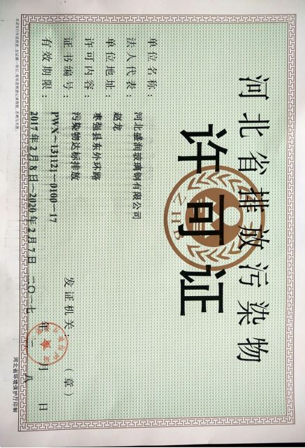 2017年2月8日河北盛潤玻璃鋼有限公司取得河北省排放污染物許可證